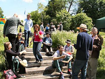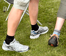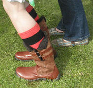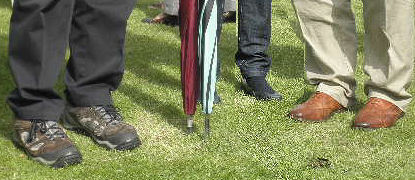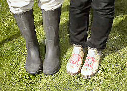 The Wellie Brigade We sent out an email a few days before the party when the weather forecast was dire. We warned people to expect wet grass, and stormy and cold conditions. As it happens we were wrong. But people came equipped with a variety of footware for the conditions